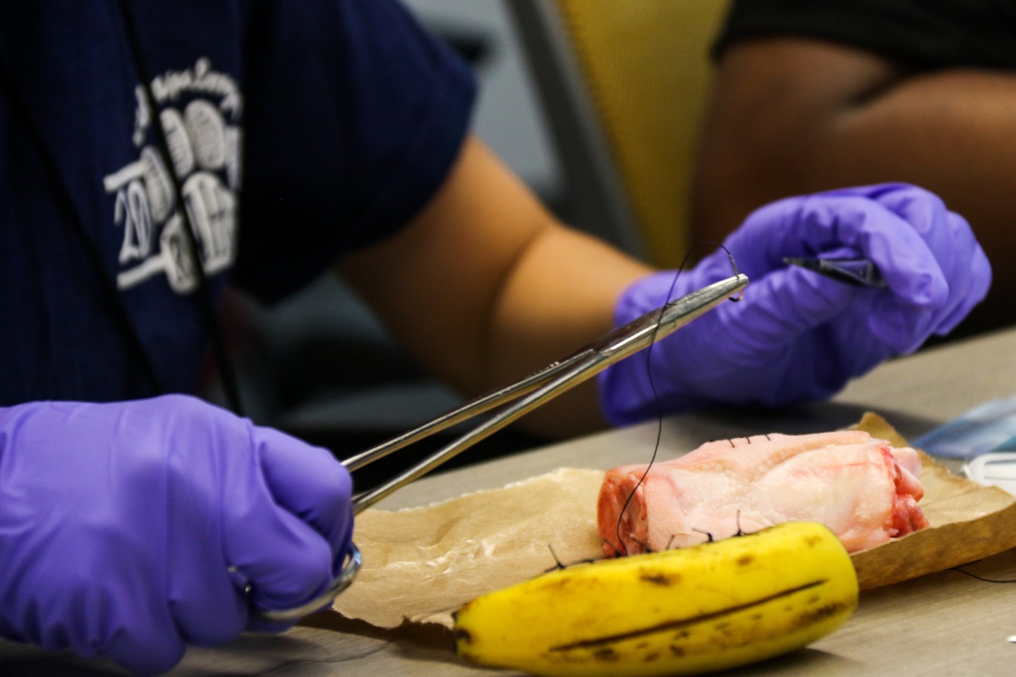 Students are exposed to practical laboratory protocols, such as bacteria culturing, blood typing, and dissection, and learn basic emergency medical techniques.
